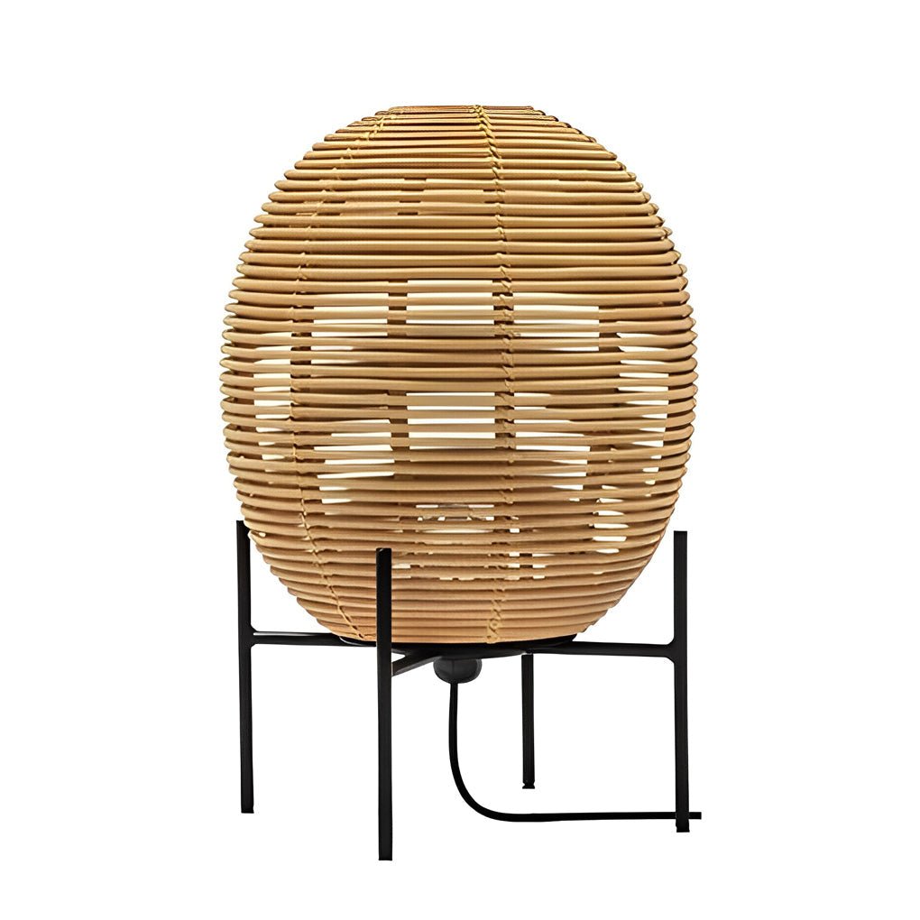 - Indulge in the traditional silhouette of this rustic farmhouse inspired standing floor lamp. The boho-influenced aesthetic of this floor lamp brings earthy elegance to a home office or living space. Playing off a light natural rattan global shade, its black finish metal frame and base offer an off-center placement that creates a perfect focal for top setting rattan lamp. This lamp weaves in a subtle touch of boho feel to any space.
